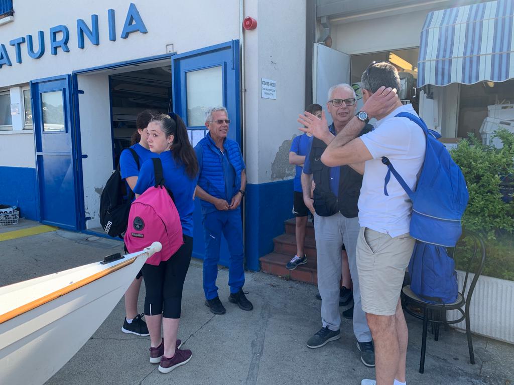 A seguito dei progetti con le scuole di Lignano nella giornata di mercoledì 11 maggio si è partecipata alla fase regionale dei campionati studenteschi ospiti della Società Canottieri Saturnia a Trieste. Bravissimi, anche se non qualificati alla finale, i nostri ragazzi: Lorenzo, Anna Chiara, Giulia, Maicol e Tommaso nel Gig a quattro con timoniere.